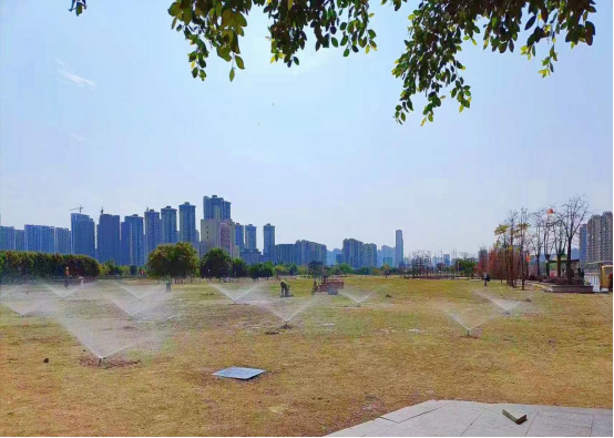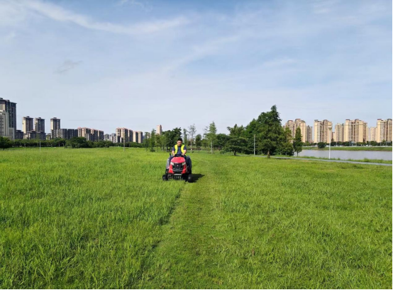 在高效推進(jìn)綠化管護(hù)的同時,管護(hù)項目持續(xù)優(yōu)化人機(jī)配合作業(yè)。一方面,機(jī)械打草替代傳統(tǒng)人工作業(yè),每日減少4人次投入,作業(yè)效率提升近30%;另一方面,配合智能噴淋系統(tǒng),精準(zhǔn)灌溉抑塵,避免積水爛根,同時控制濕度、杜絕蚊蟲孳生溫床,實現(xiàn)護(hù)綠與防蚊“一舉兩得”。
